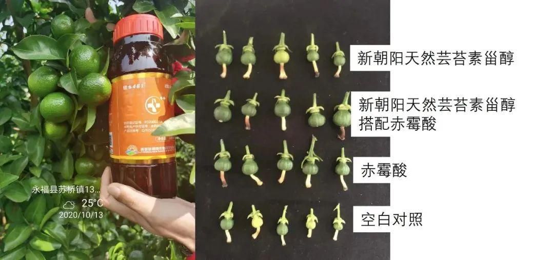 除了溫度、光照會(huì)影響果實(shí)糖分積累以外,營(yíng)養(yǎng)的補(bǔ)充和調(diào)節(jié)劑的使用也決定著果實(shí)糖度和著色程度。尤其針對(duì)四川晚熟雜柑到后期氣溫慢慢的降低,普通蕓苔素吸收率利用率會(huì)大打折扣,而天然蕓苔素能提高作物的光合作用效率,在低溫下吸收利用率高,能夠低溫條件下促進(jìn)養(yǎng)分、色素和糖分的合成與積累。