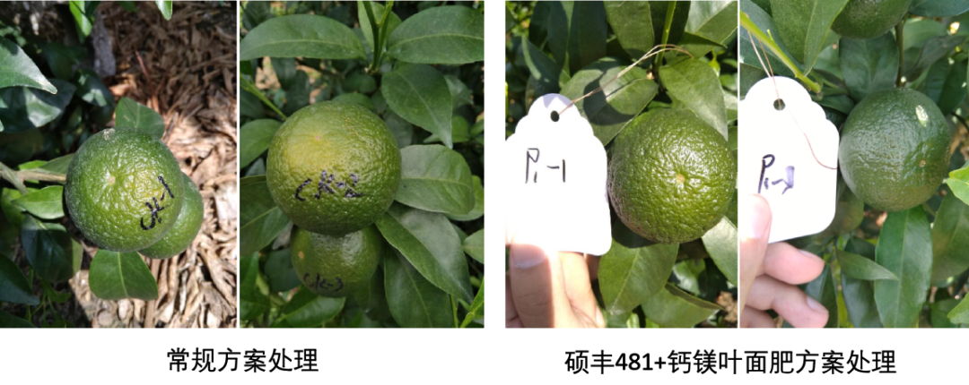 在雜柑的幼果膨大期使用天然蕓苔素+鈣鎂葉面肥能夠促進(jìn)樹(shù)體補(bǔ)充鈣元素,果面光靚,減少裂果產(chǎn)生,預(yù)防日灼果。小編推薦:雜柑幼果膨大期,使用天然蕓苔素碩豐481?2000倍+多迎鈣鎂1000倍噴霧。與常規(guī)方案處理相比,此方案處理,果實(shí)直徑大、果面光亮,日灼果發(fā)生概率降低30%。
